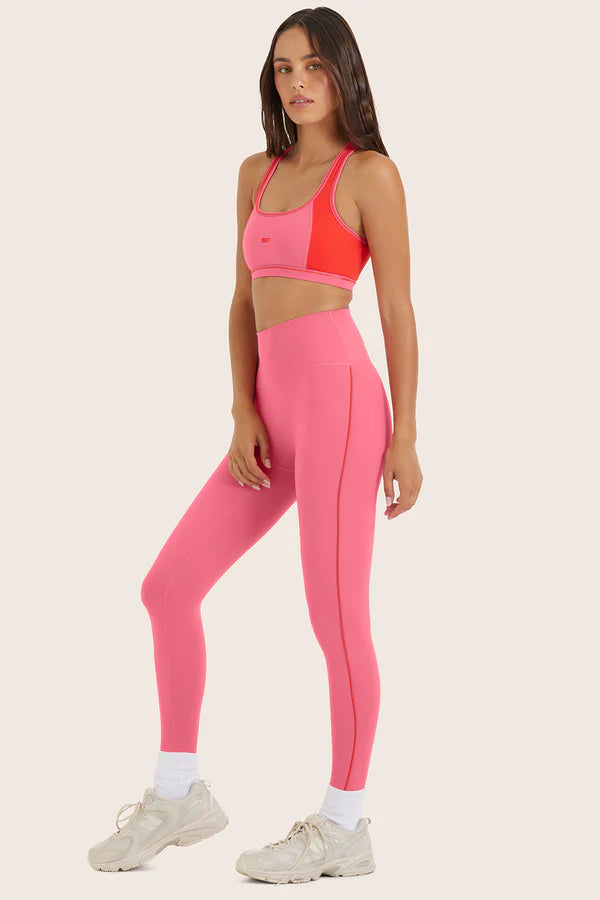 - Contrast piping at side seams.