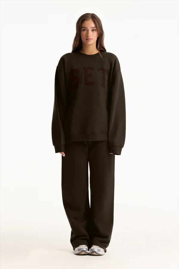 - SET logo printed across center front.